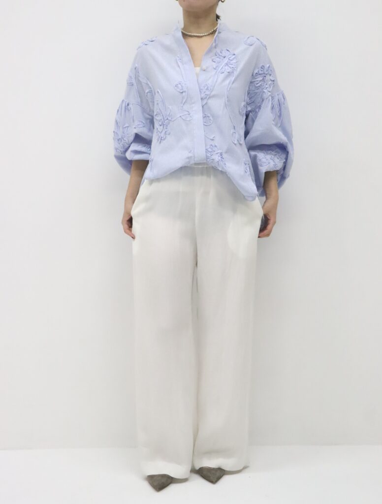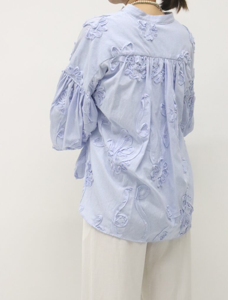 ボリューム袖の刺繍ブラウスは