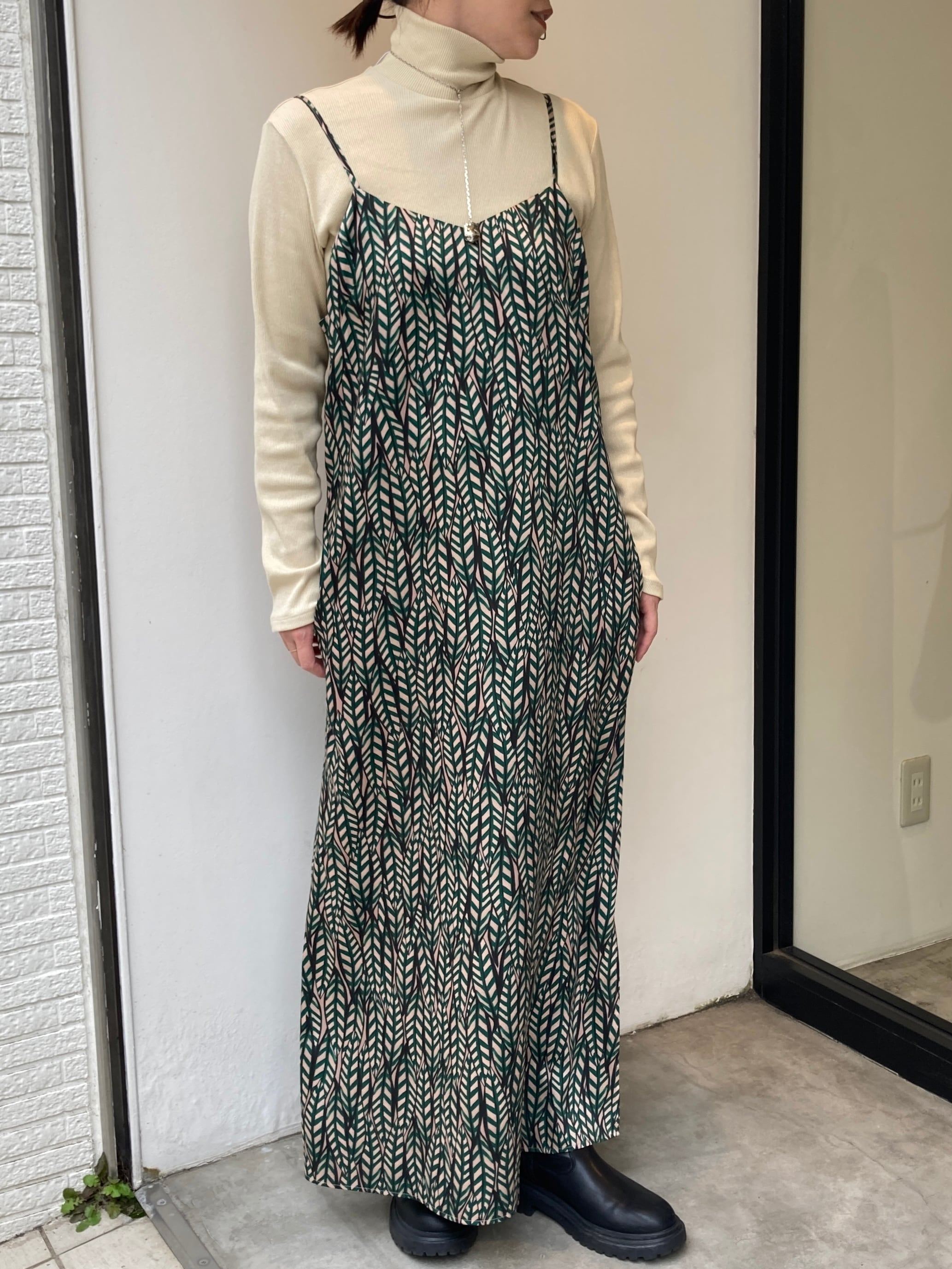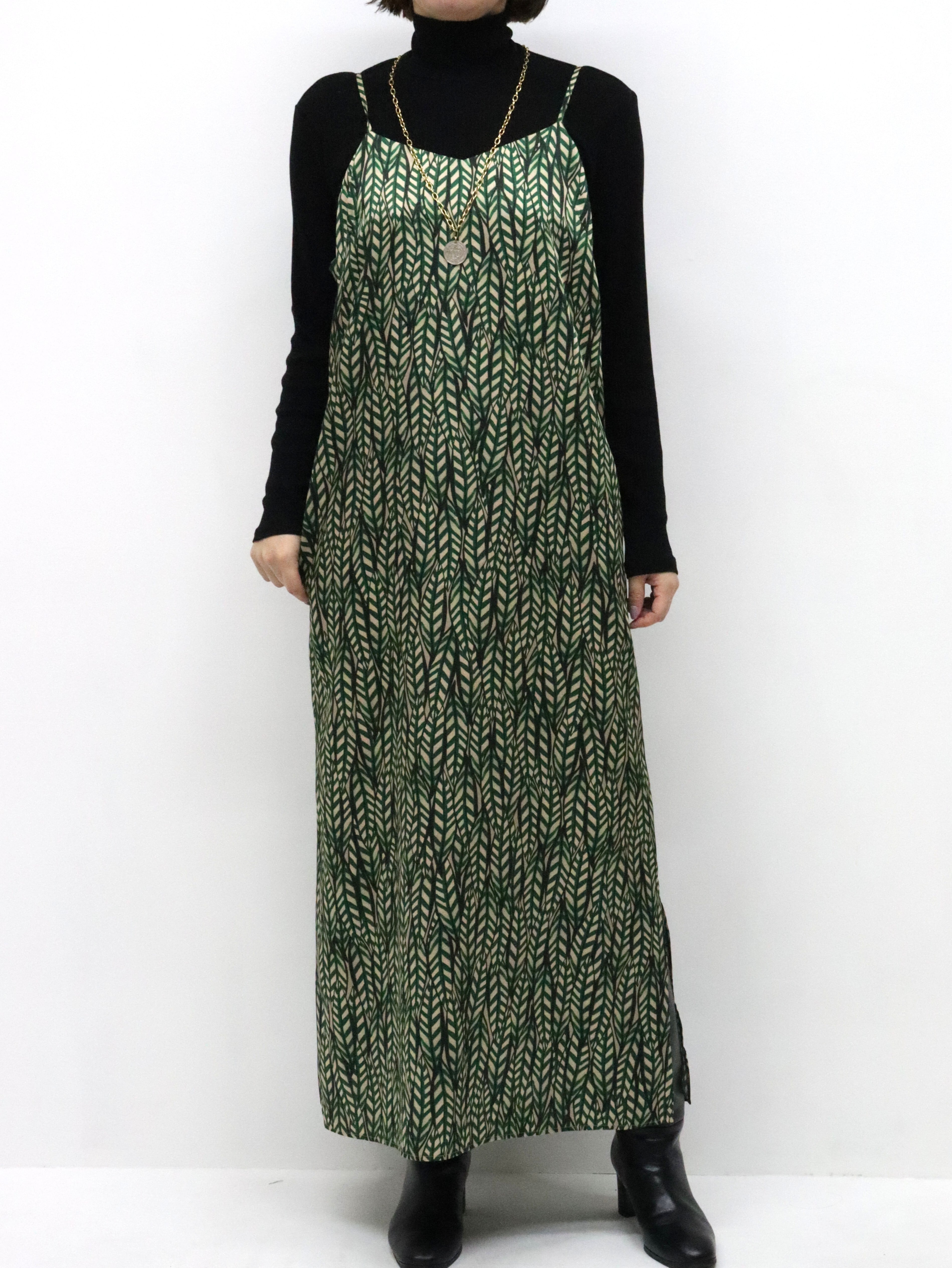 ポリリーフフラワープリントキャミワンピース(グリーン)
