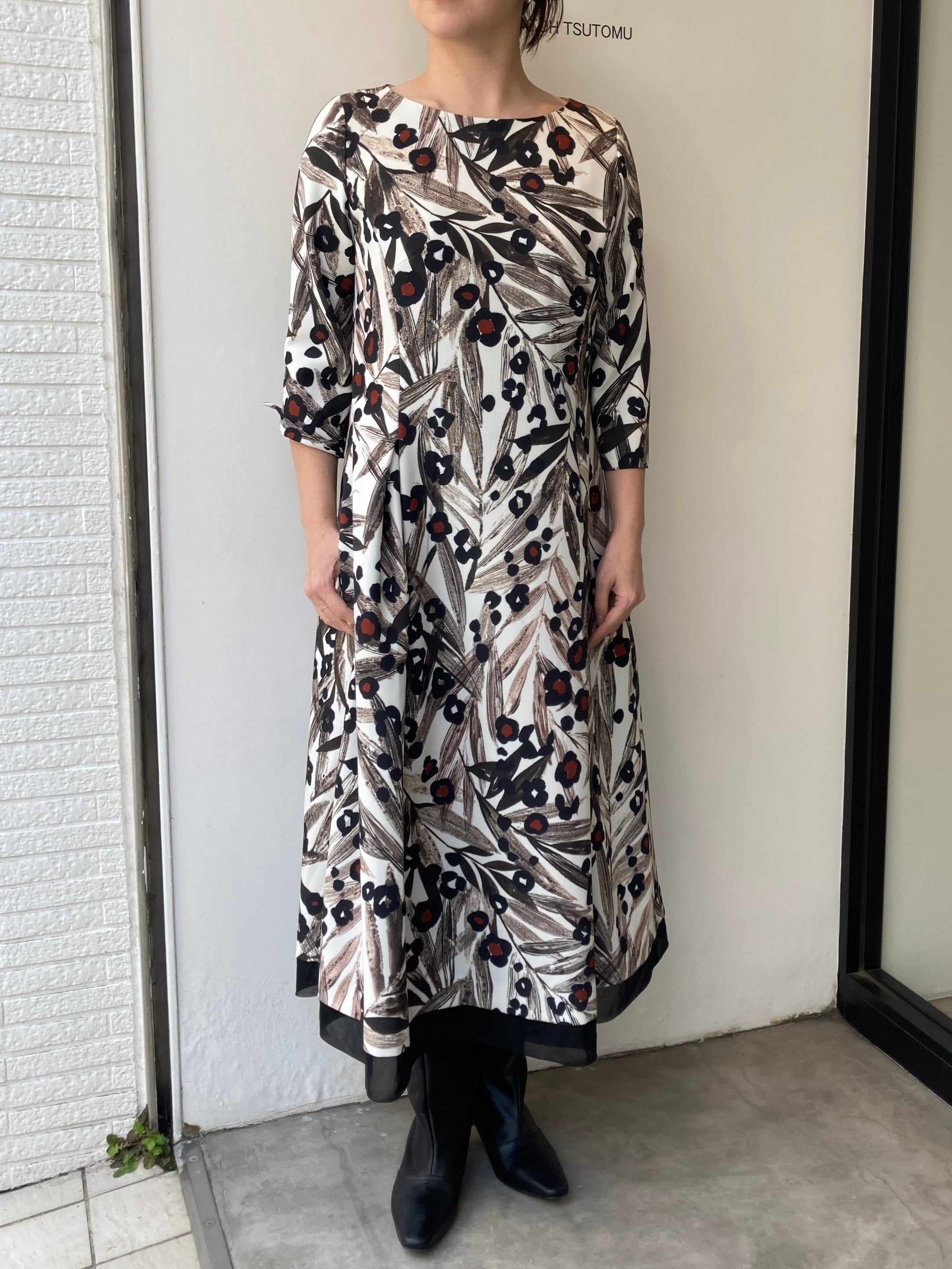ポリストレッチフラワープリントワンピース(ベージュ)