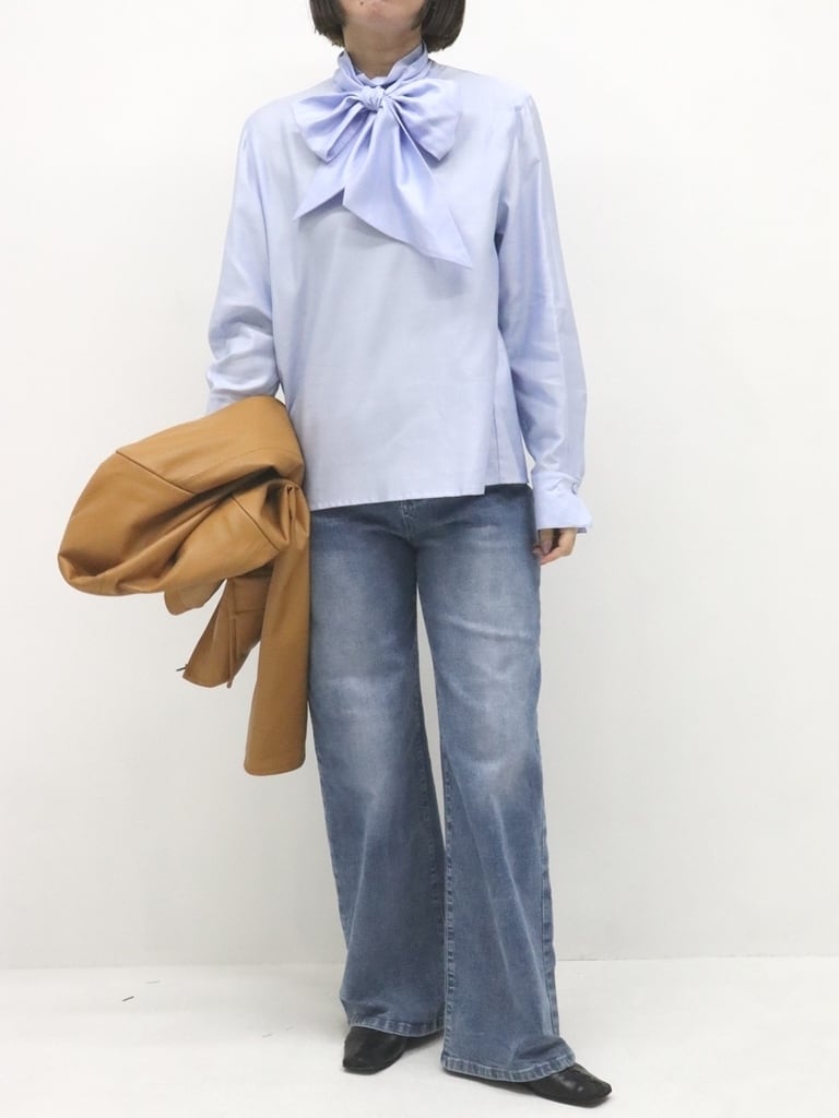 横繻子モールスキンボウタイブラウス(アイボリー)