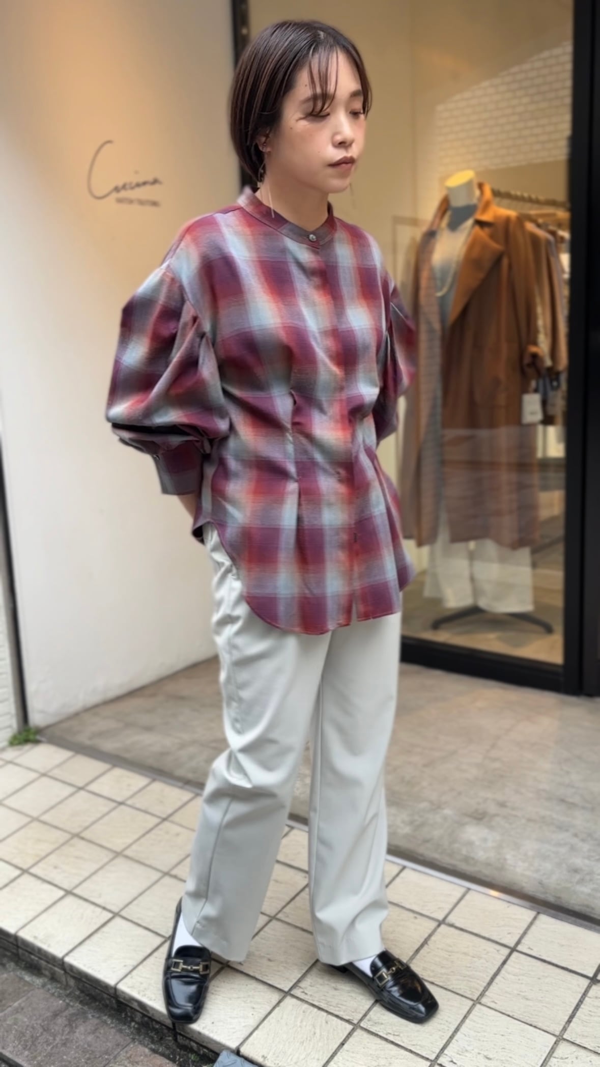 オンにもオフにも取り入れやすい、オトナのためのチェックブラウスです。