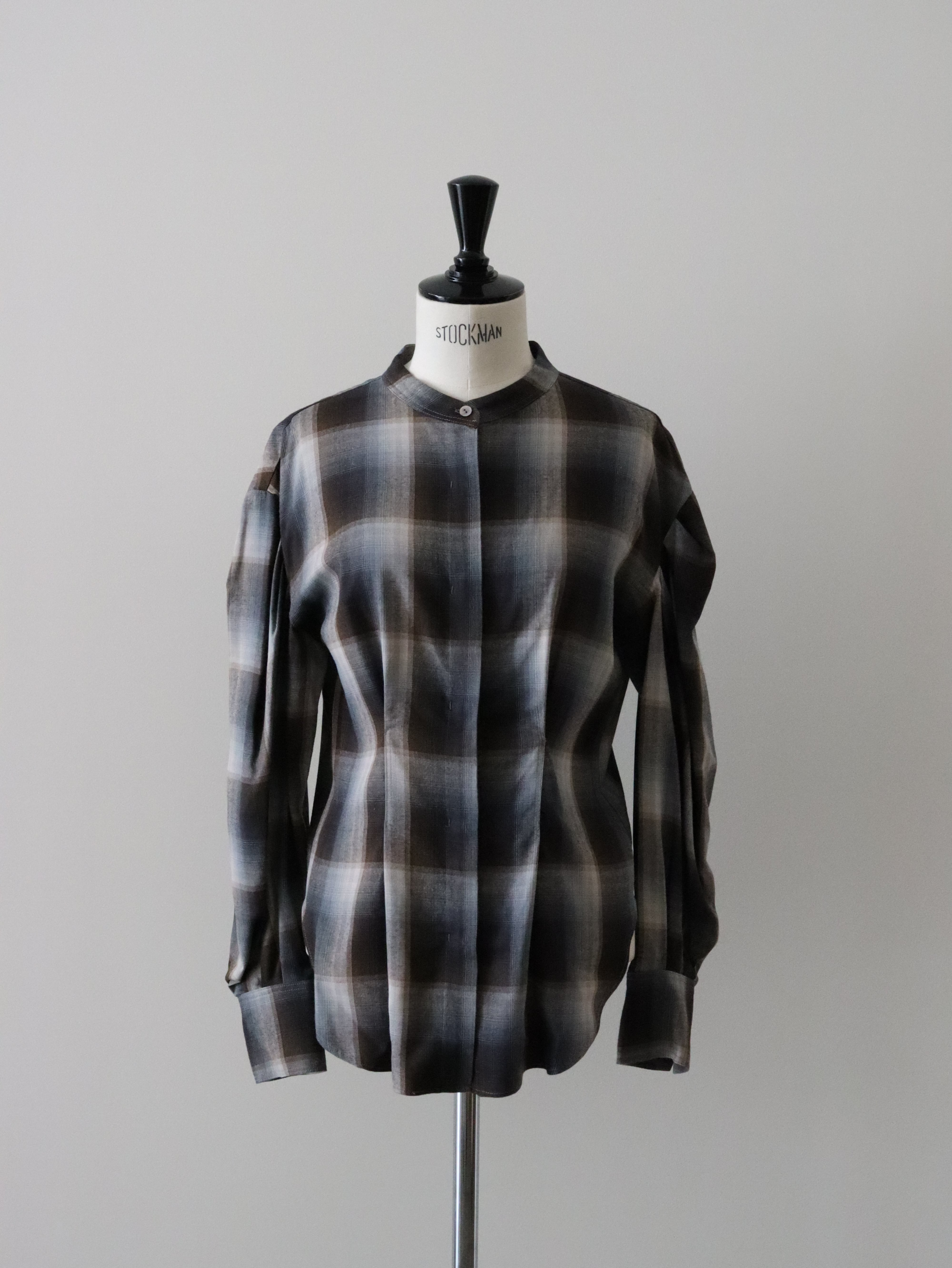 比翼仕立てのミニマルなフロントに、袖のタックディテールでさりげない立体感をプラスしました。