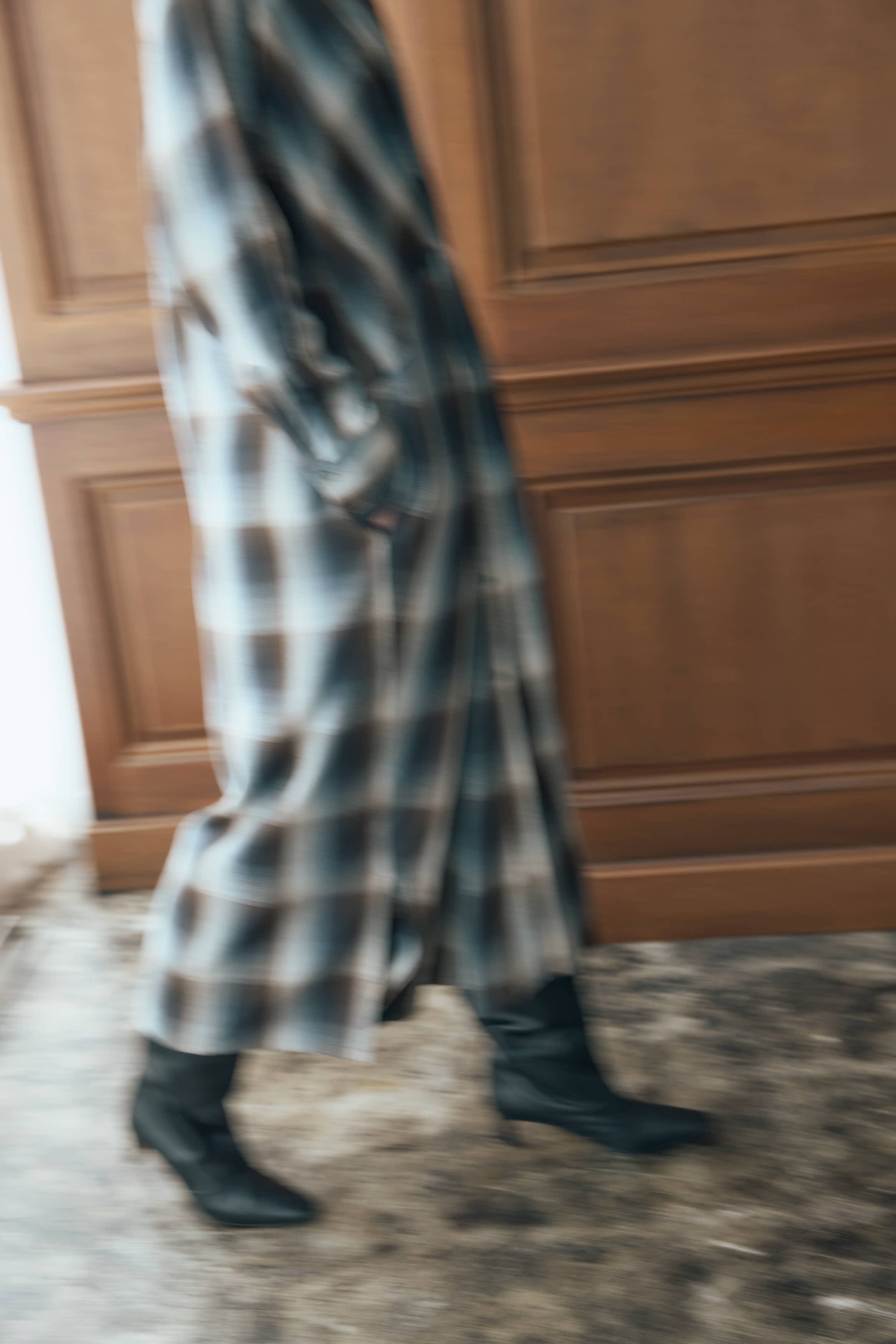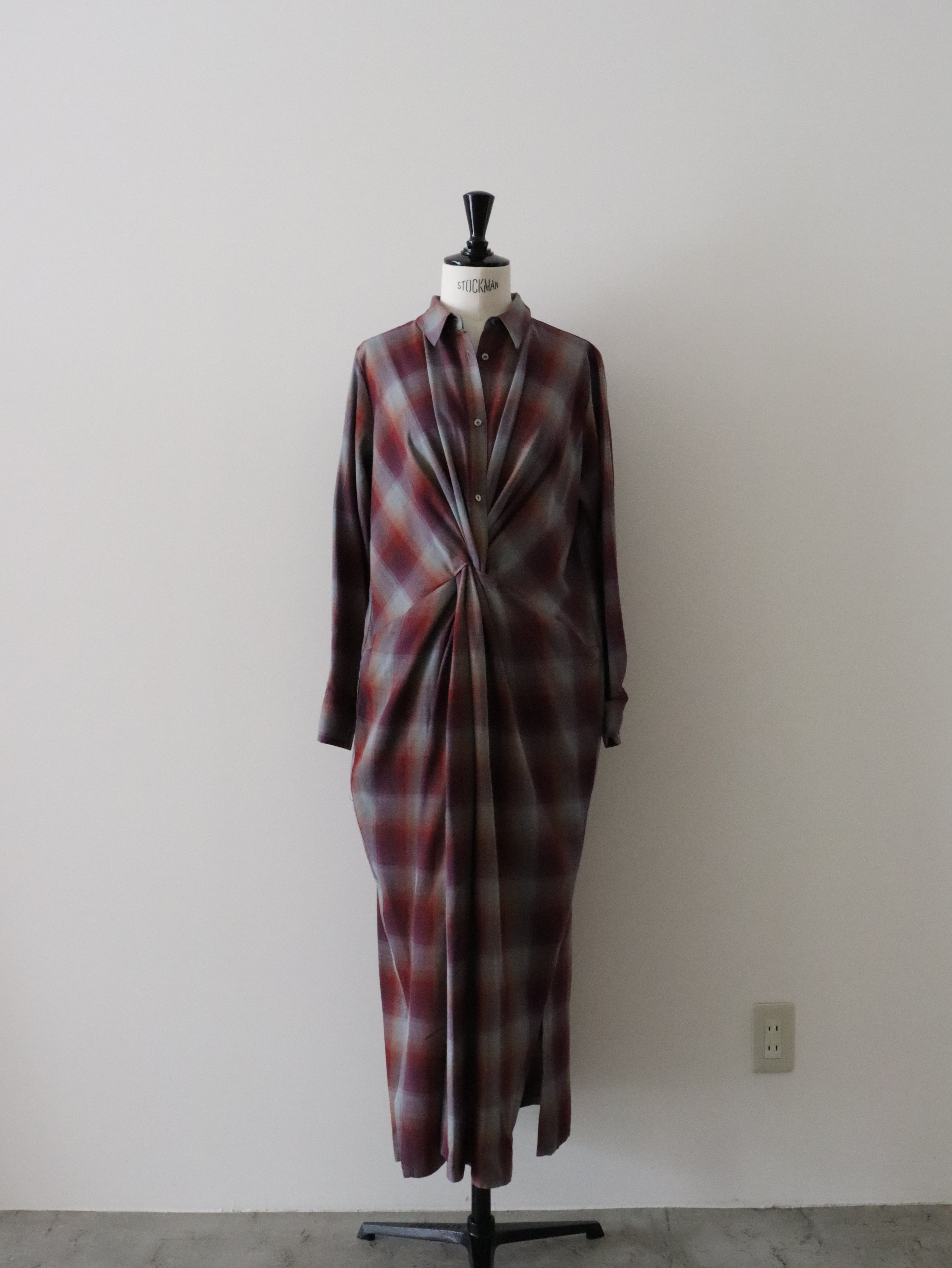 落ち感のあるニュアンスチェックで仕立てたシャツワンピース