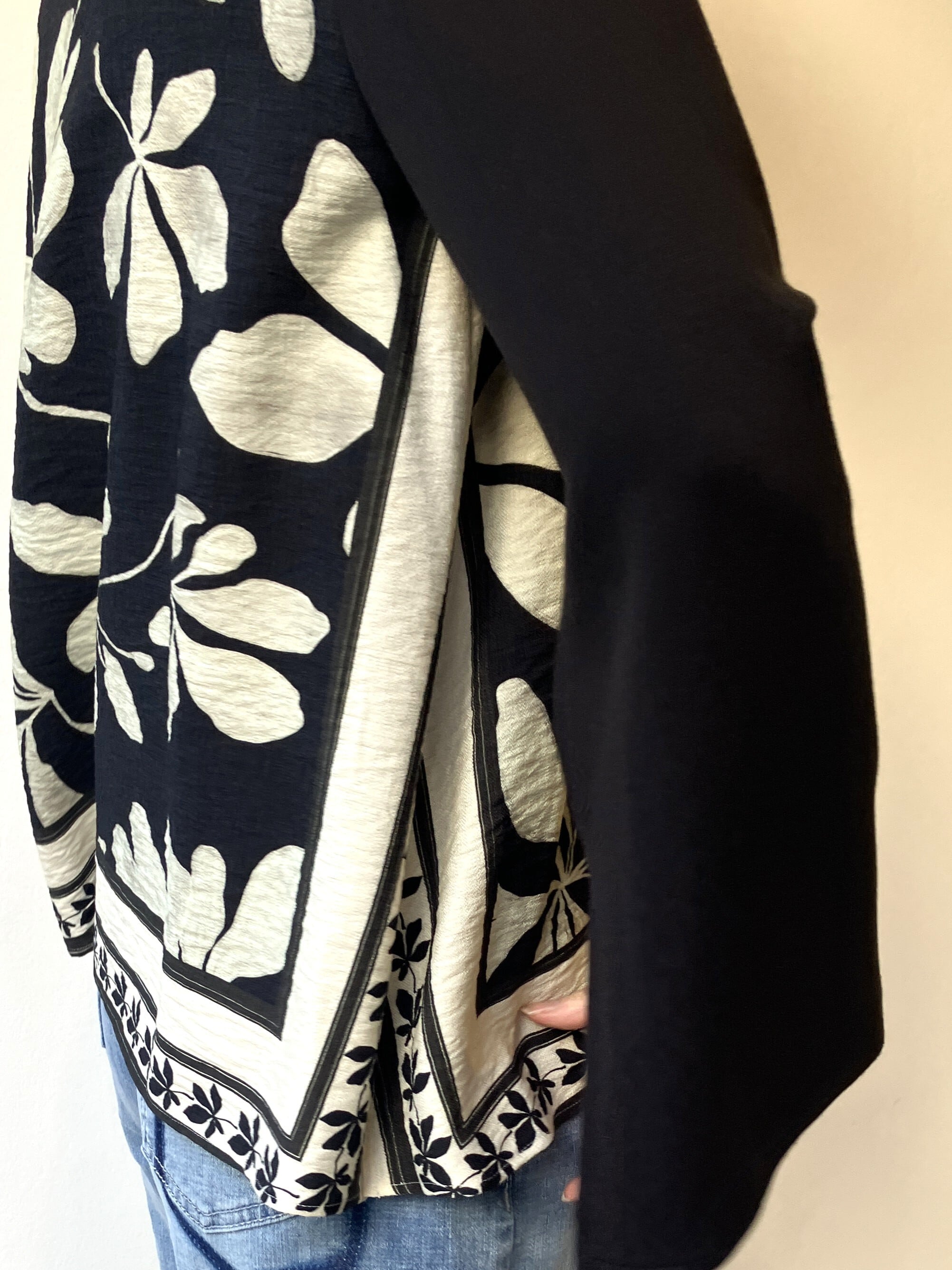モノトーンパネルブラウスは、独特の凹凸感が施された生地を使用しており、風合いのある仕上がりが魅力です。