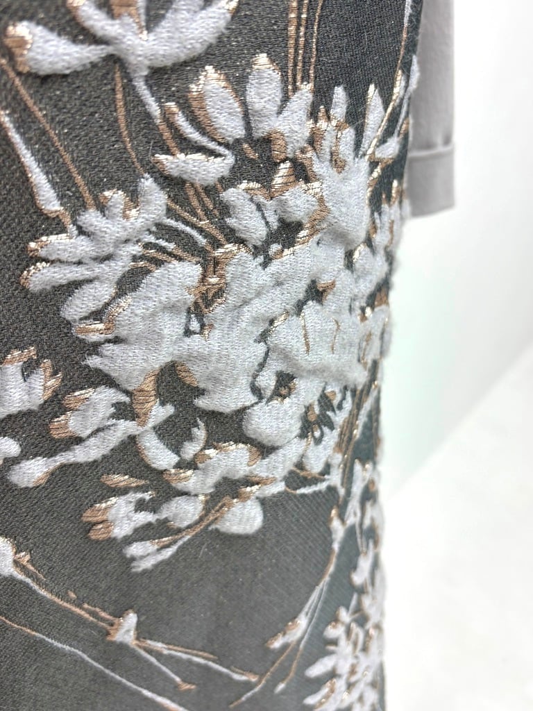 Carlo Pozziフクレラメワンピースは、高級感溢れるフクレジャガード生地を使用し、軽やかな着心地とともに、女性らしさを引き立てるデザインが魅力です。