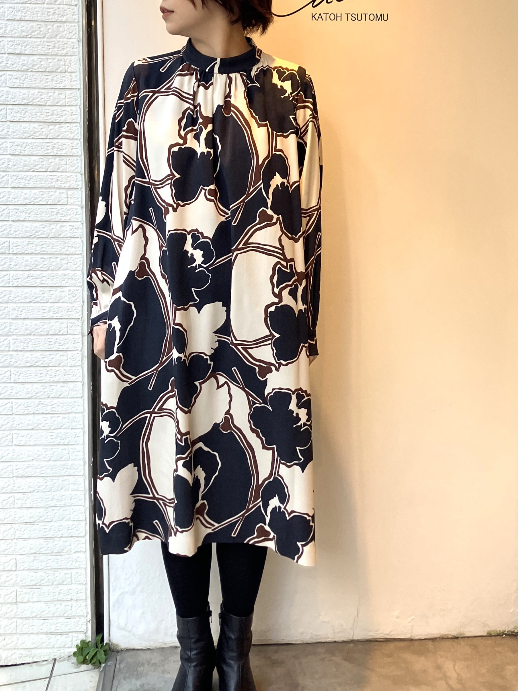 DEVEAUXビスプリントワンピース(ブラウン・フラワー)