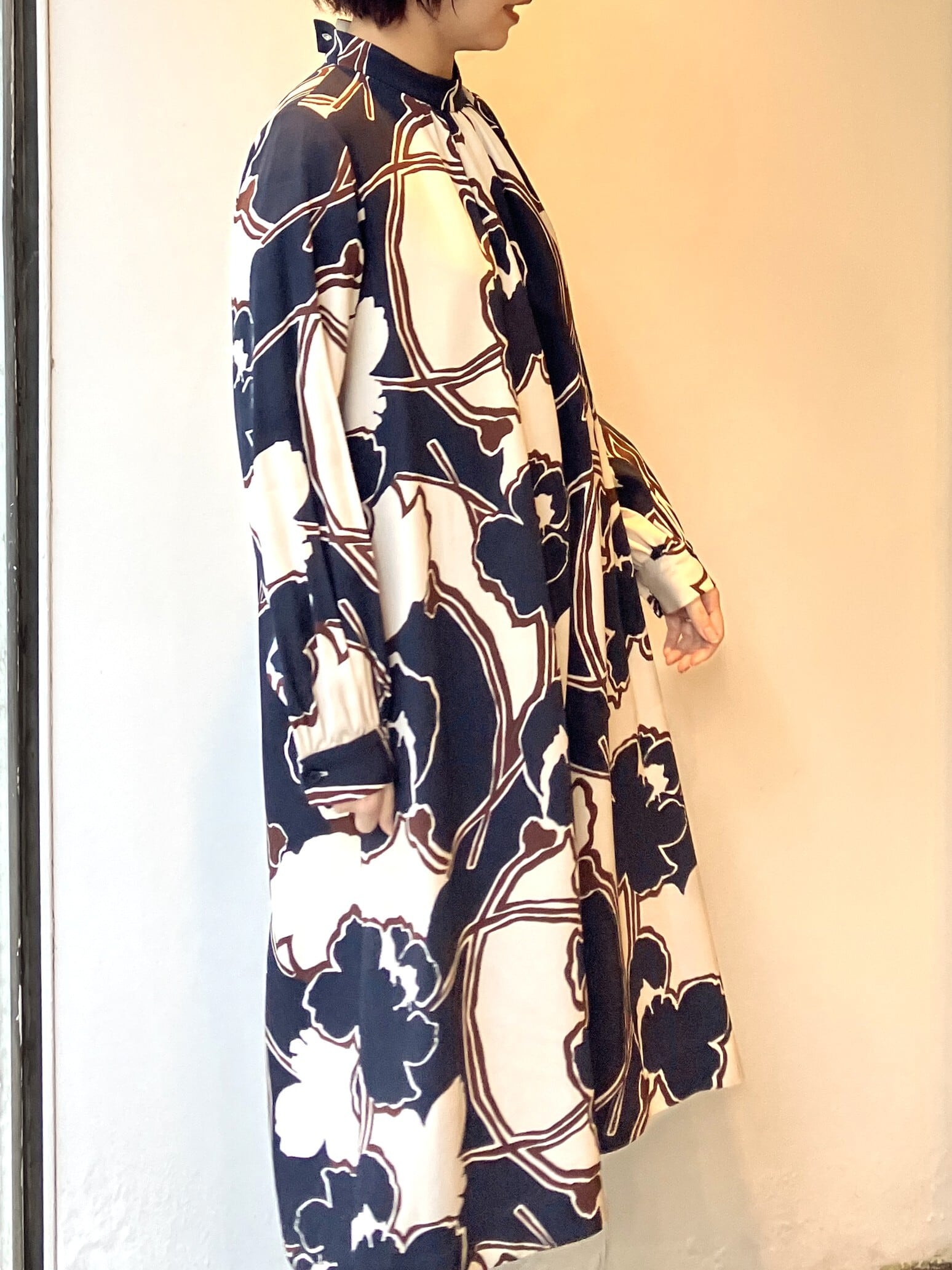 大柄のフラワープリントが目を引き、ビスコース100%の柔らかな素材感は、肌触りが良く、快適な着用感を提供します。
