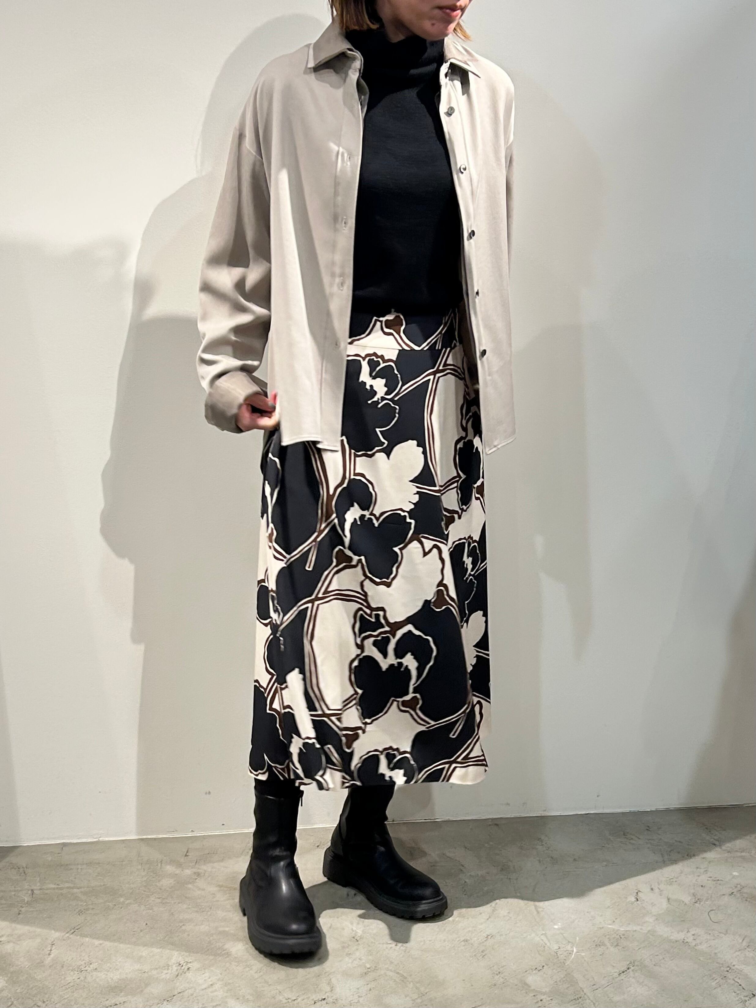 トレンド感満載の大柄フラワープリントで、どんなトップスとも合わせやすいデザイン。