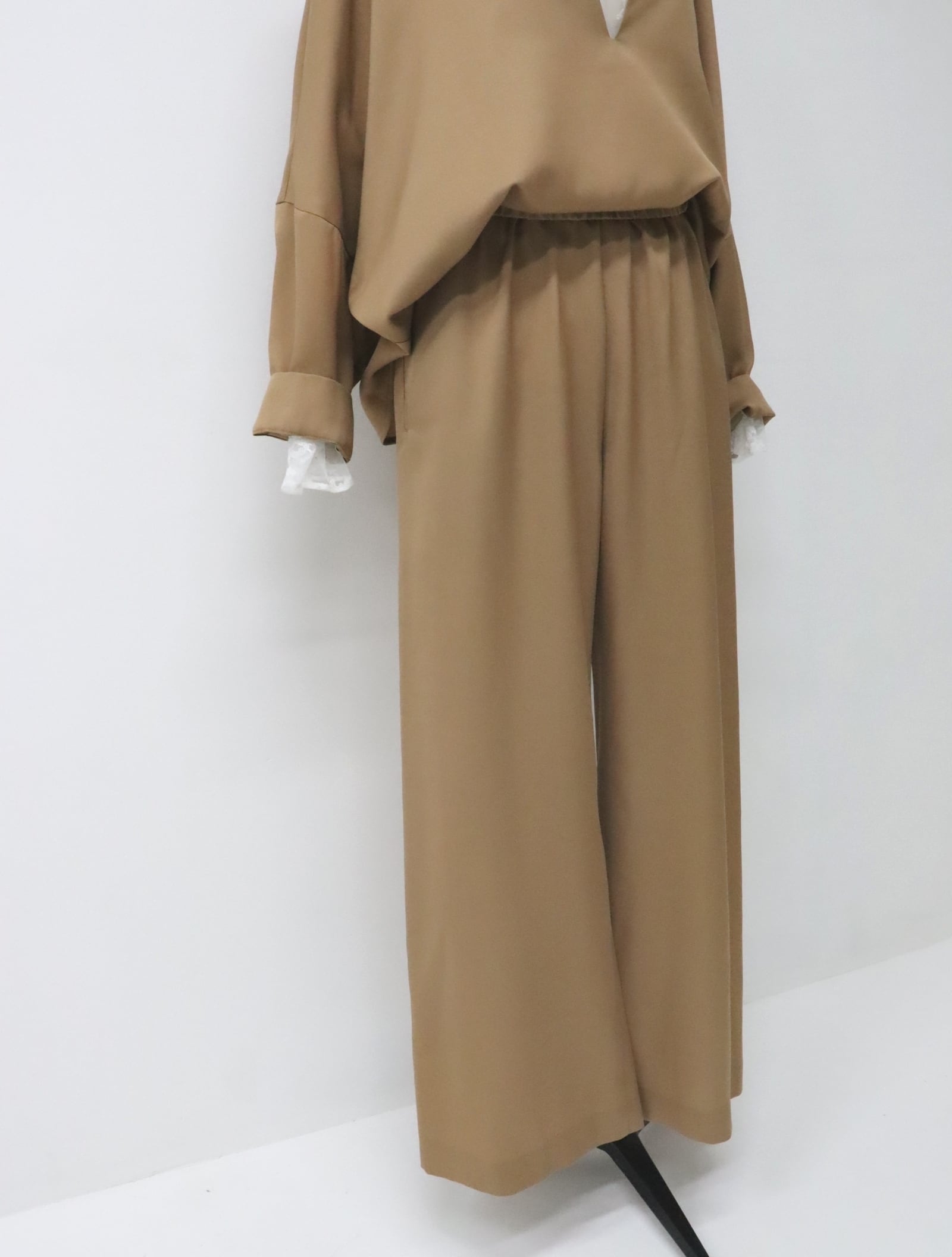 トリアセテートとウールを交織した、軽やかさと上質感を併せ持つツイル素材のパンツ。
