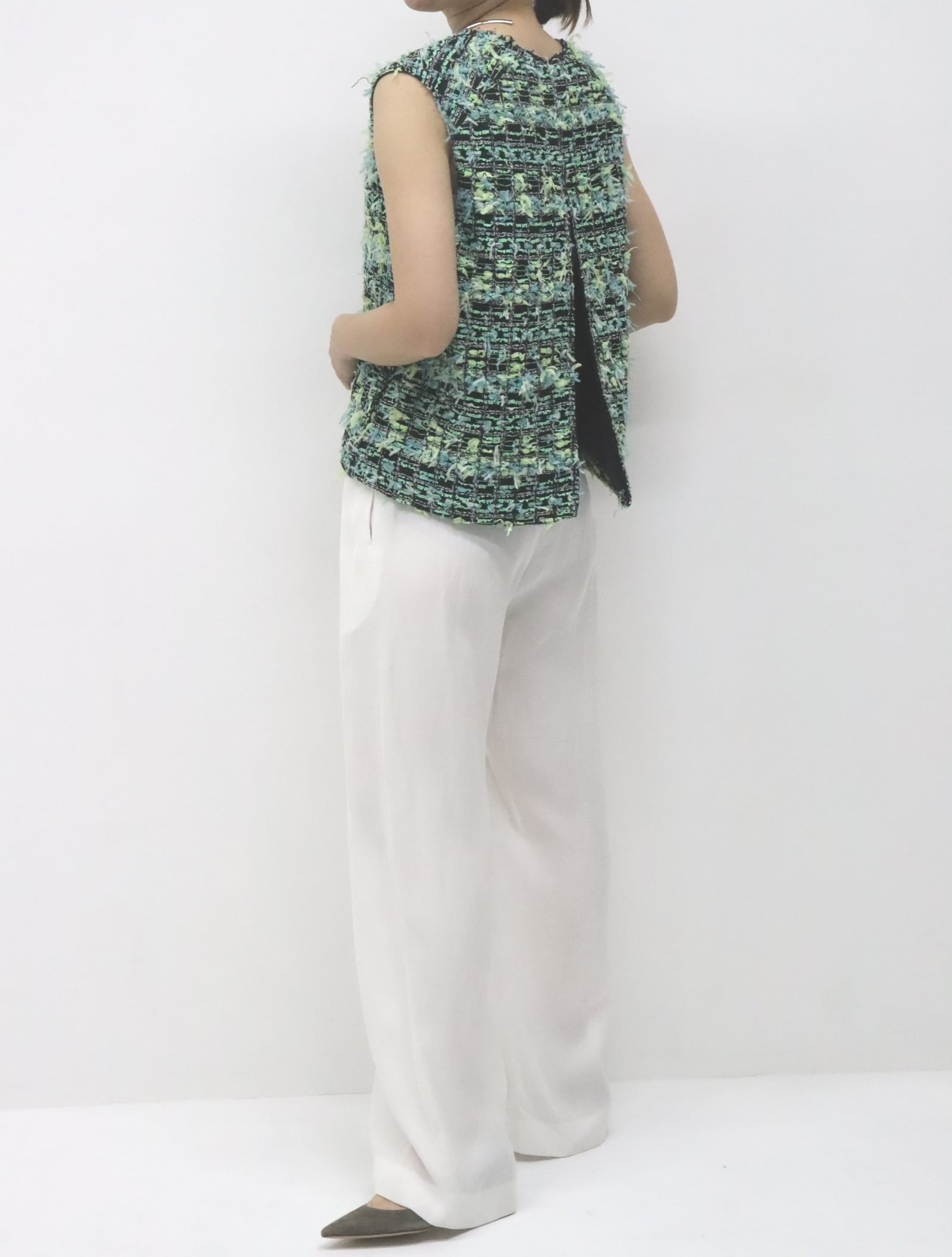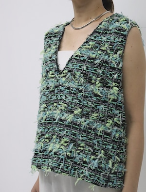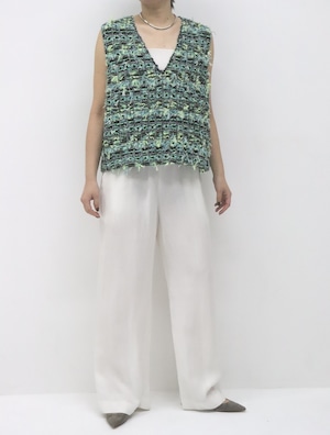 フランスの老舗ファブリックメーカー“MALHIA KENT”社のツイード素材を使用したベスト。