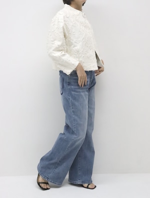 短めの着丈が、ワイドパンツやスカートとも好相性です。