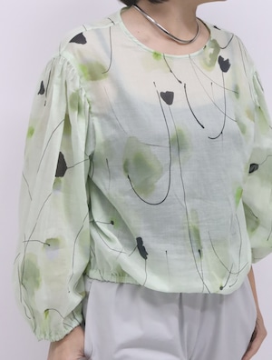 コットンボイルフラワープリントブラウス(グリーン)