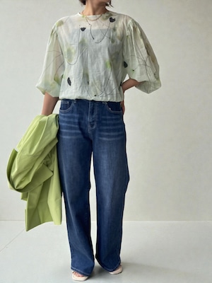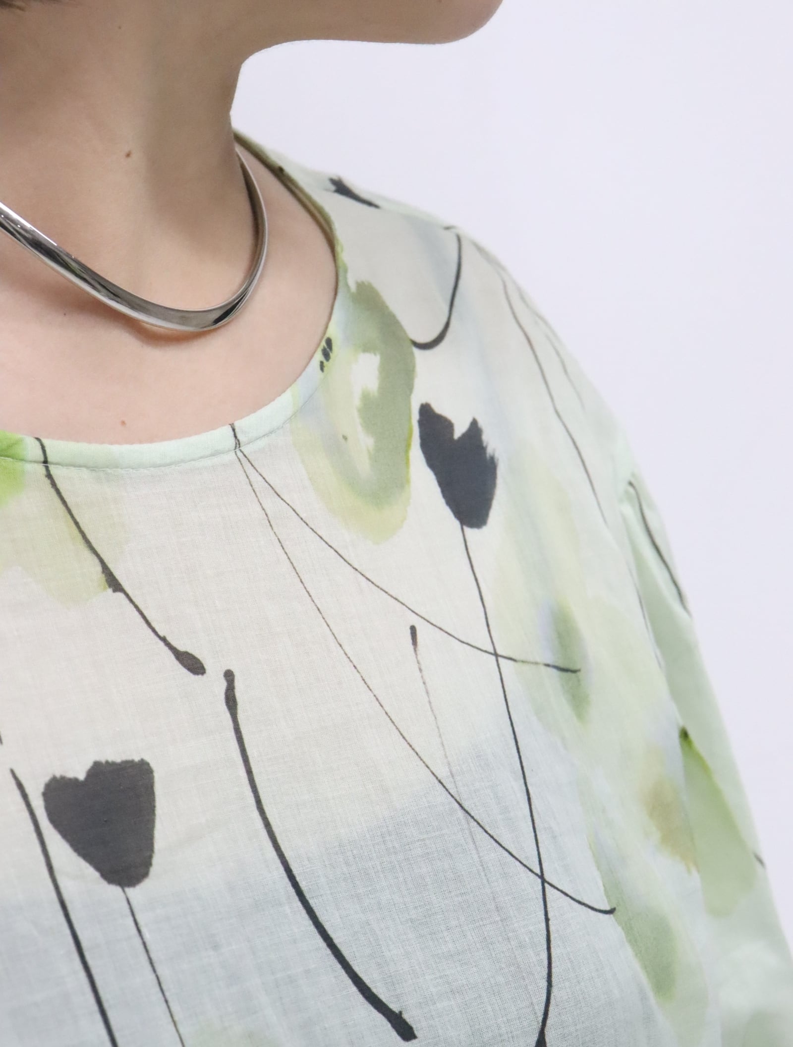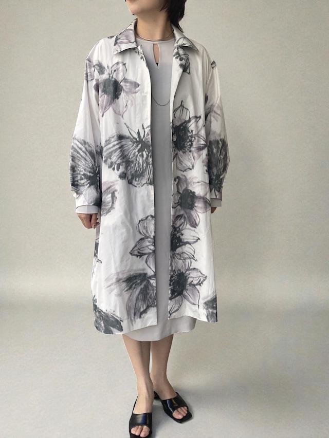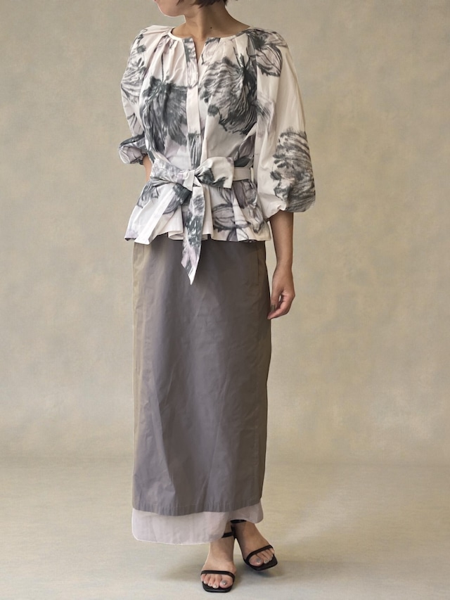プリントの色合いもやさしく、大人のスタイルに馴染みます。