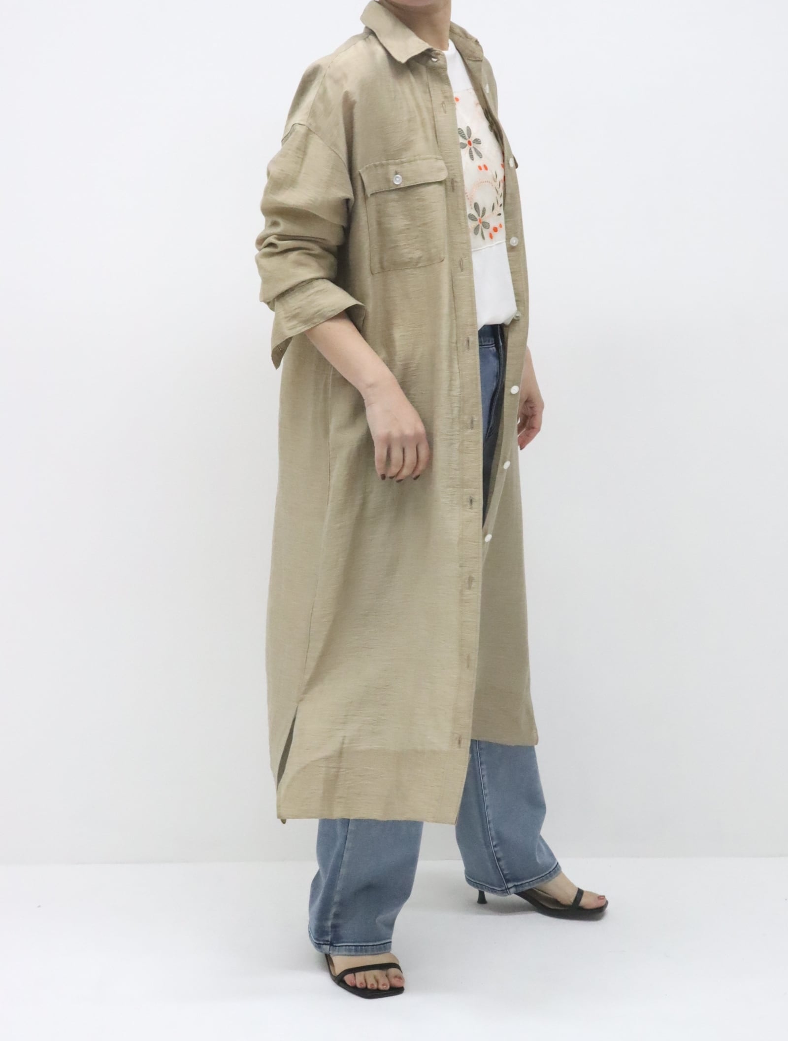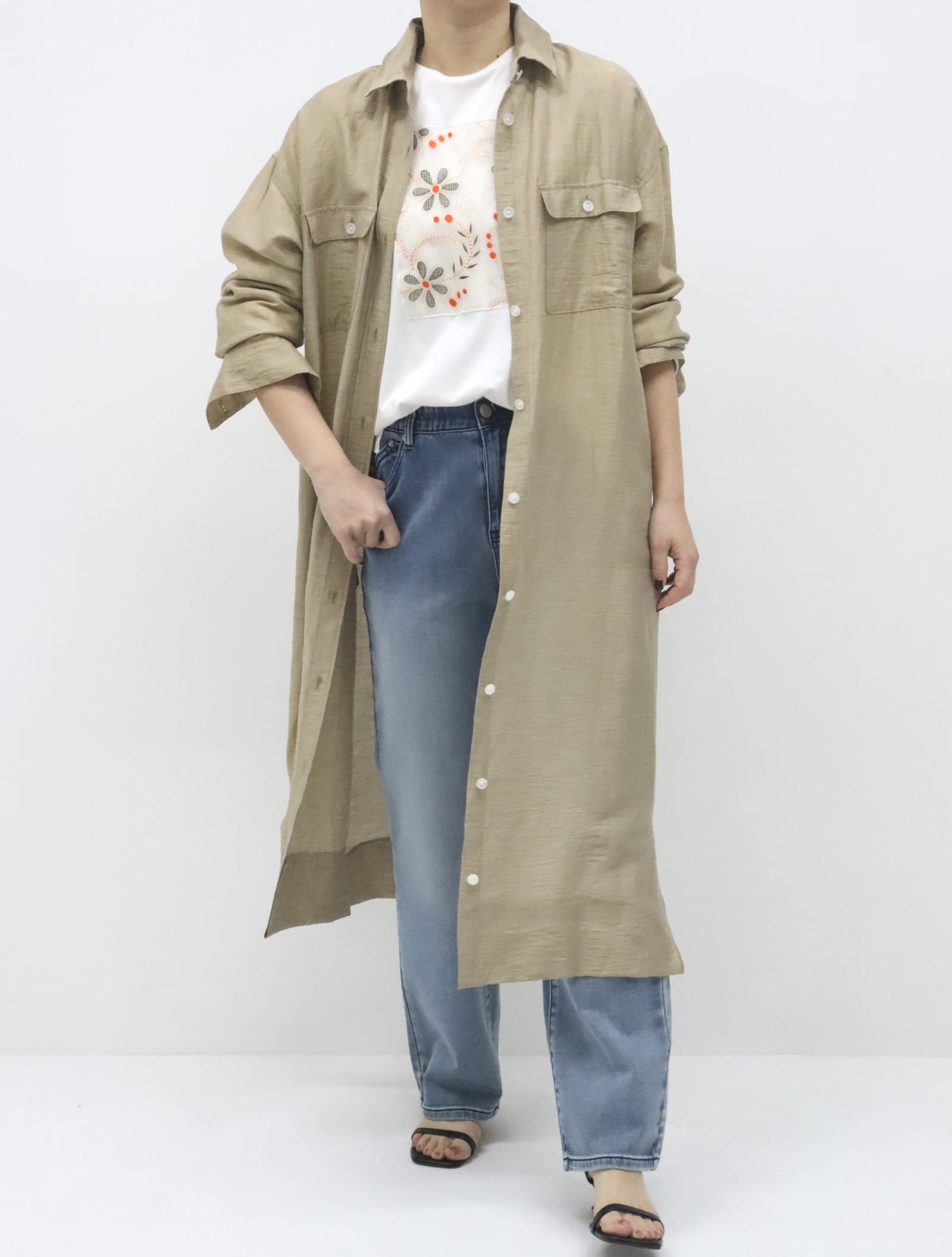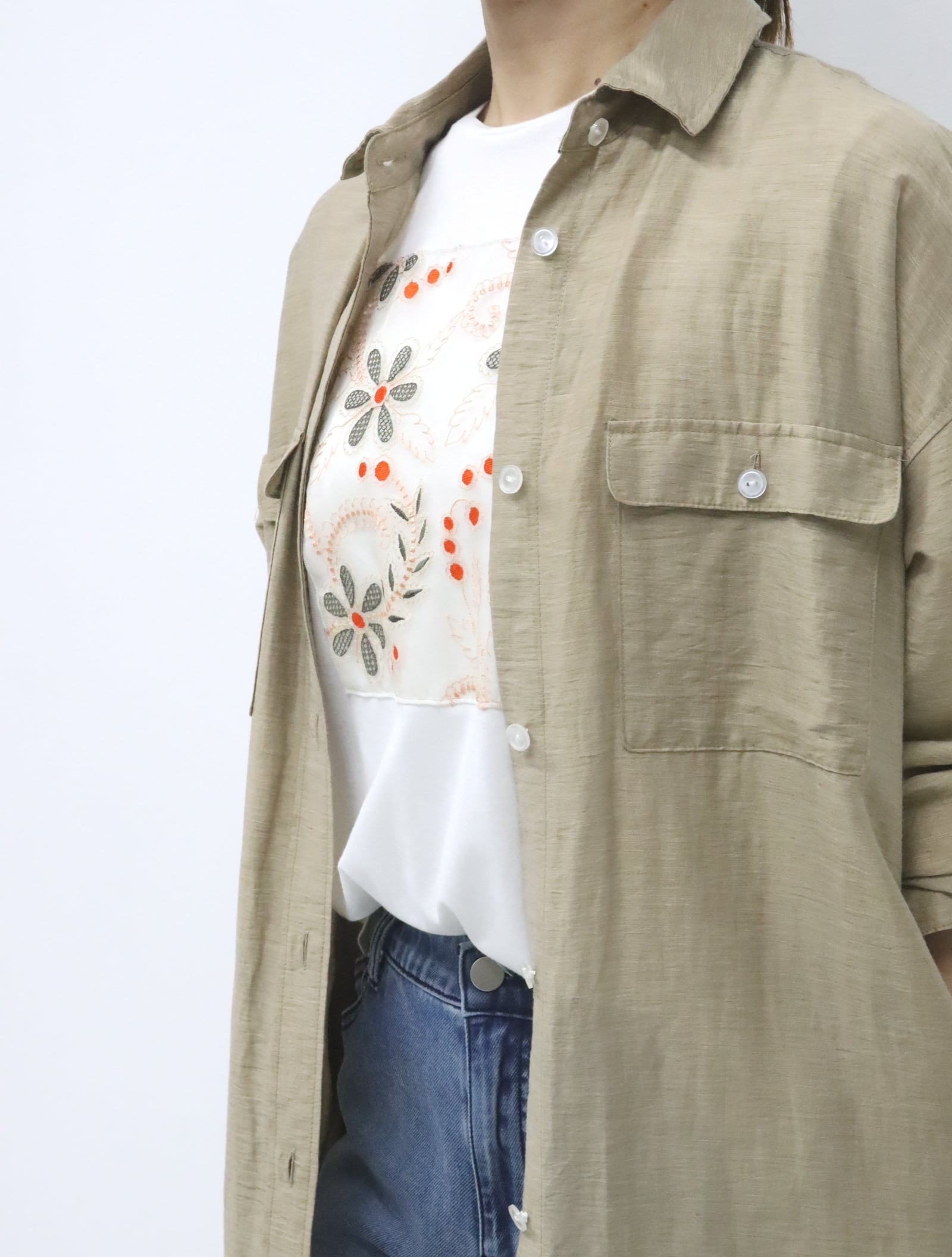ワンピースとしても、前を開けて羽織としても着用可能です。