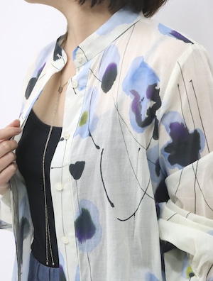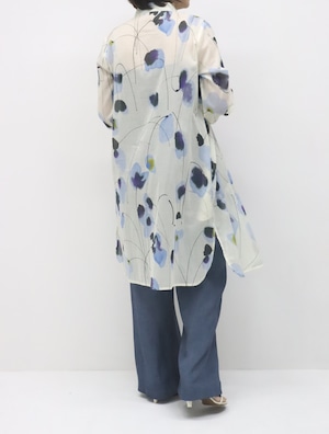 コットンボイルフラワープリントロングブラウス(グリーン)