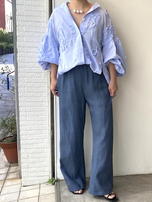 フィラメントレーヨン麻ツイルパンツ(ブルー)
