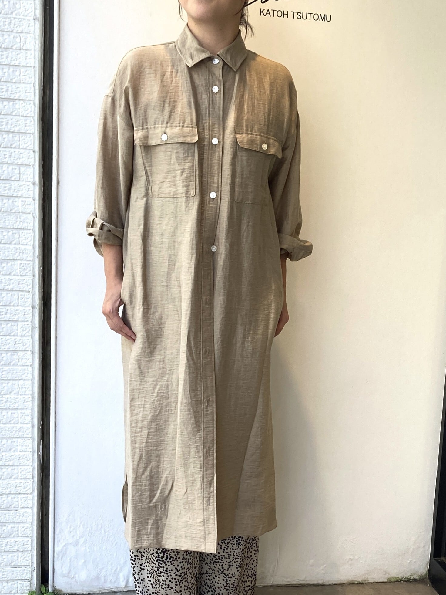 アクラグラナダモノフィラリネンシャツワンピース(ベージュ)