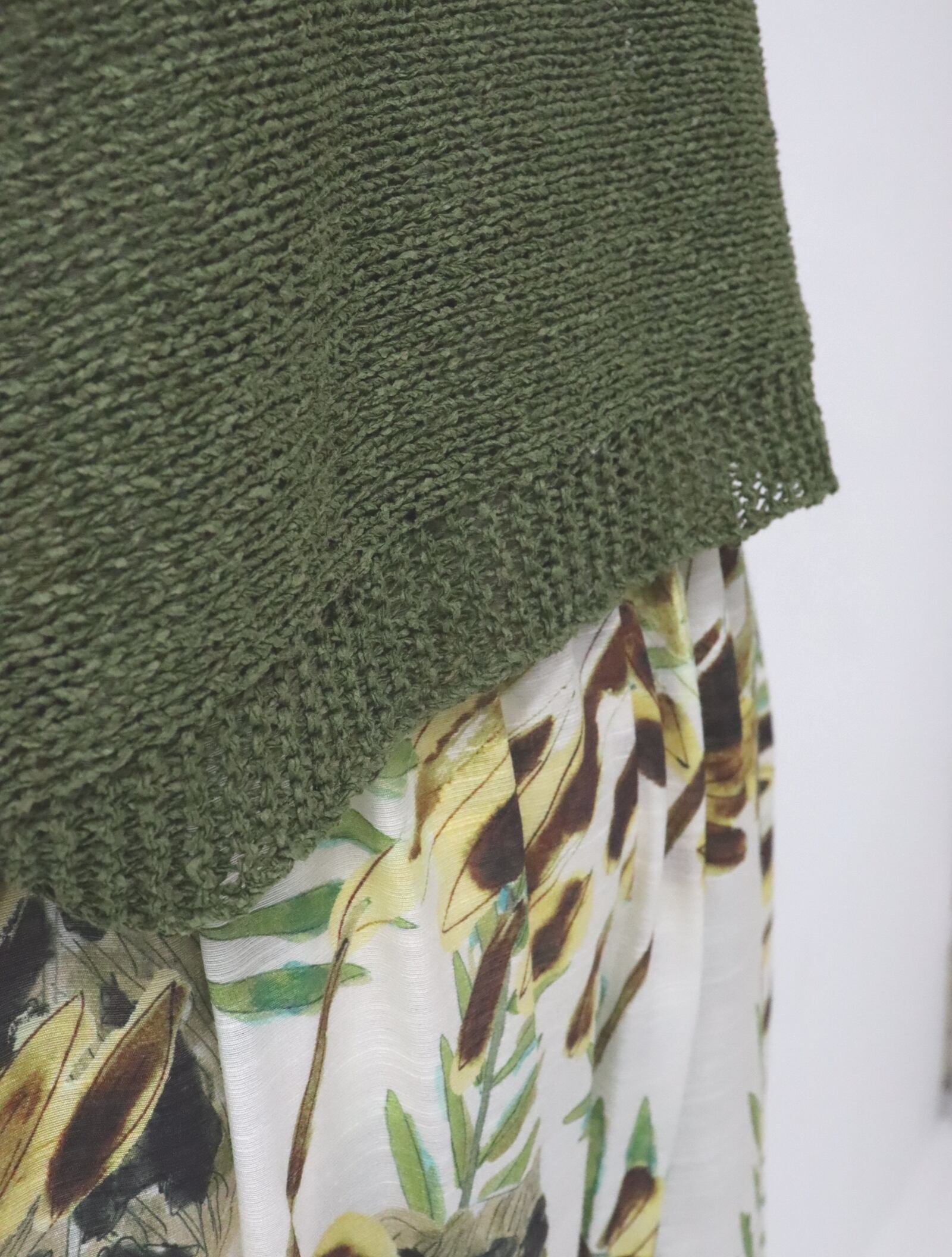 ざっくりとしたニットを合わせた、CUCINAらしいスタイリングがおすすめ。