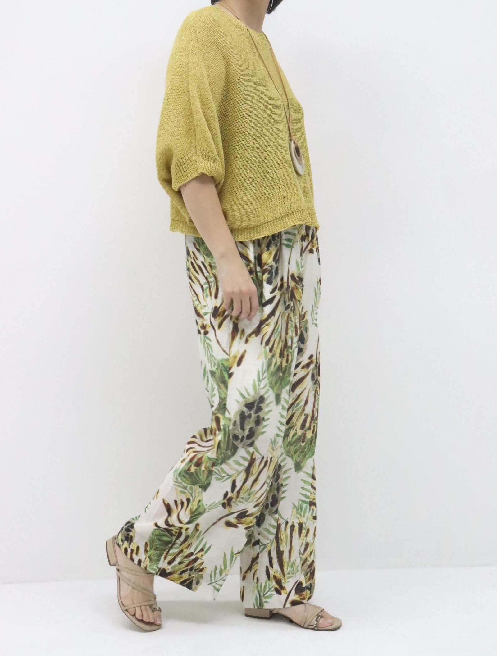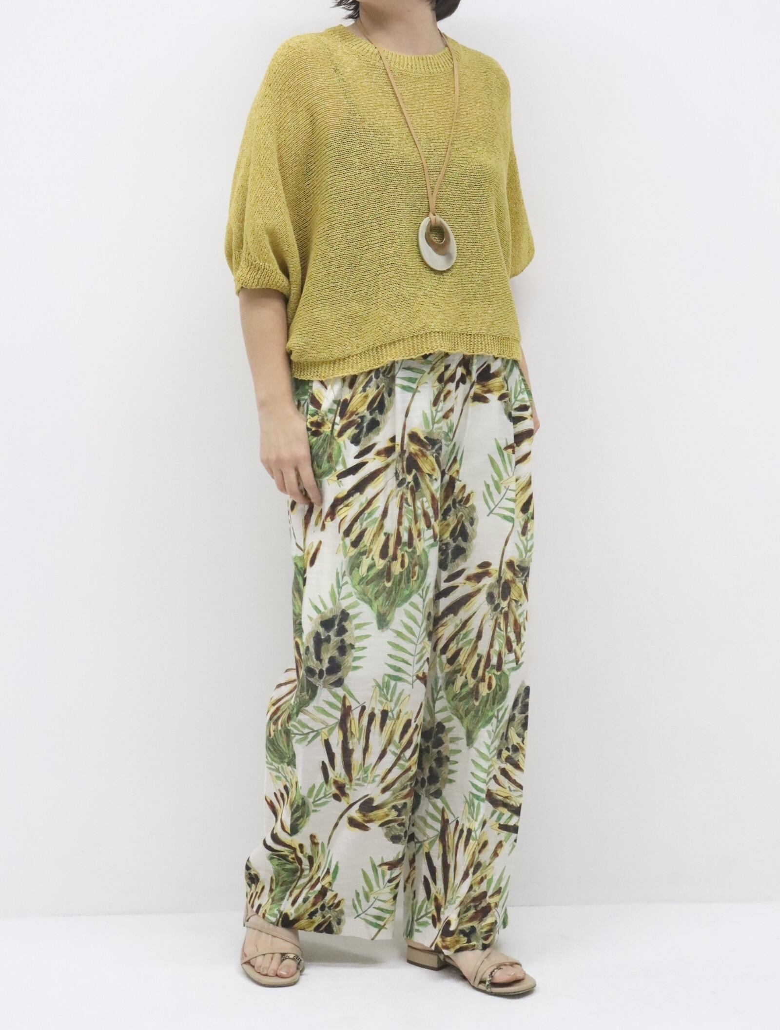 ビスリネンボタニカルプリントパンツ