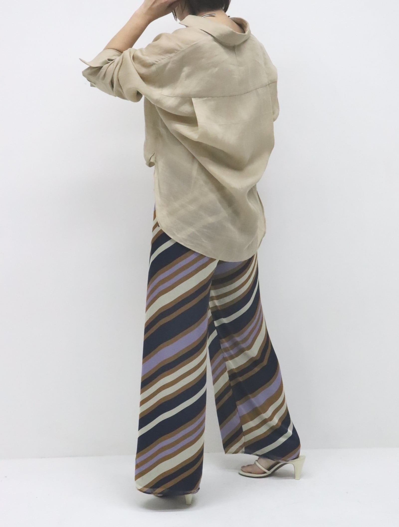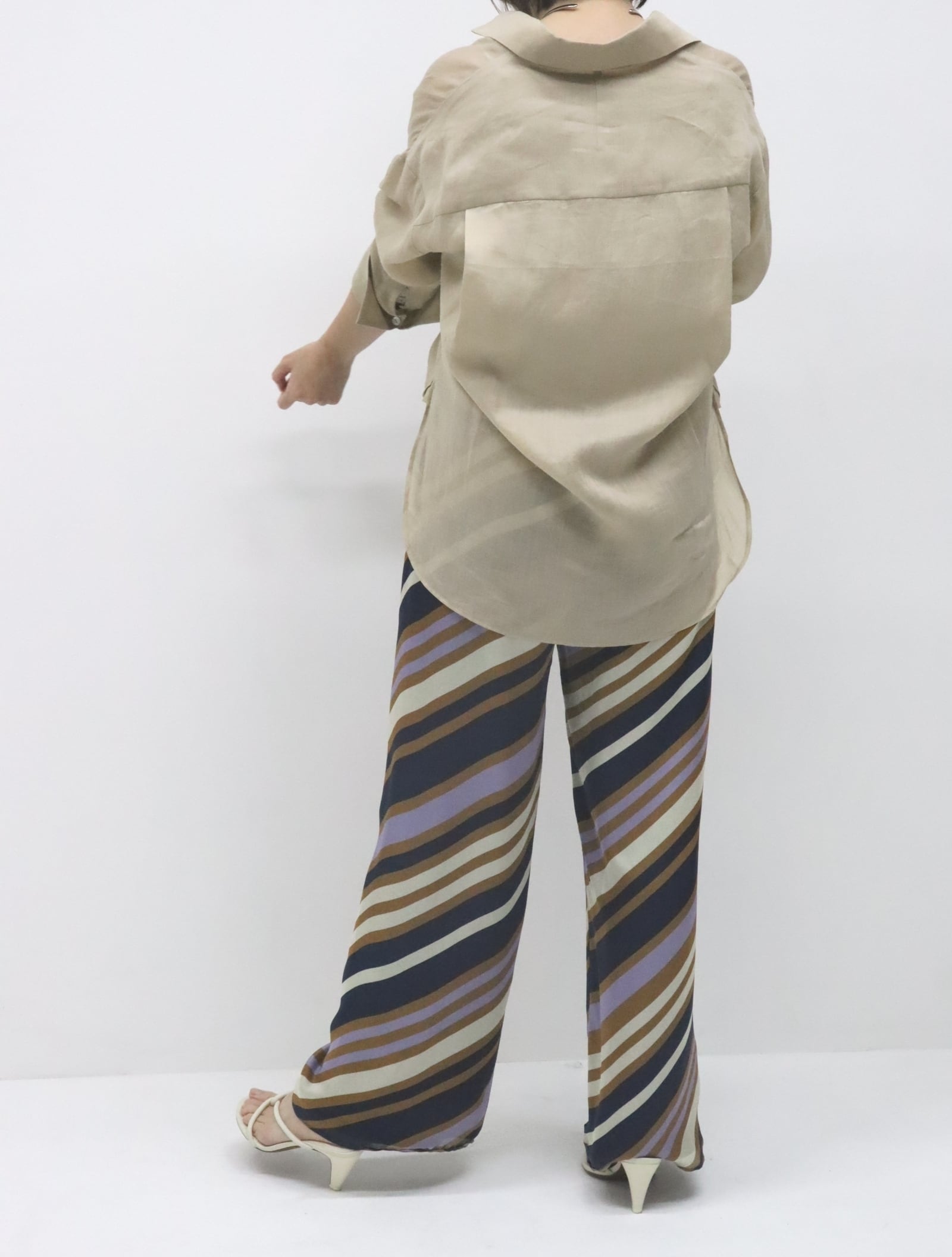 柄パンツとの合わせで、抜け感のある大人のコーディネートもおすすめです。