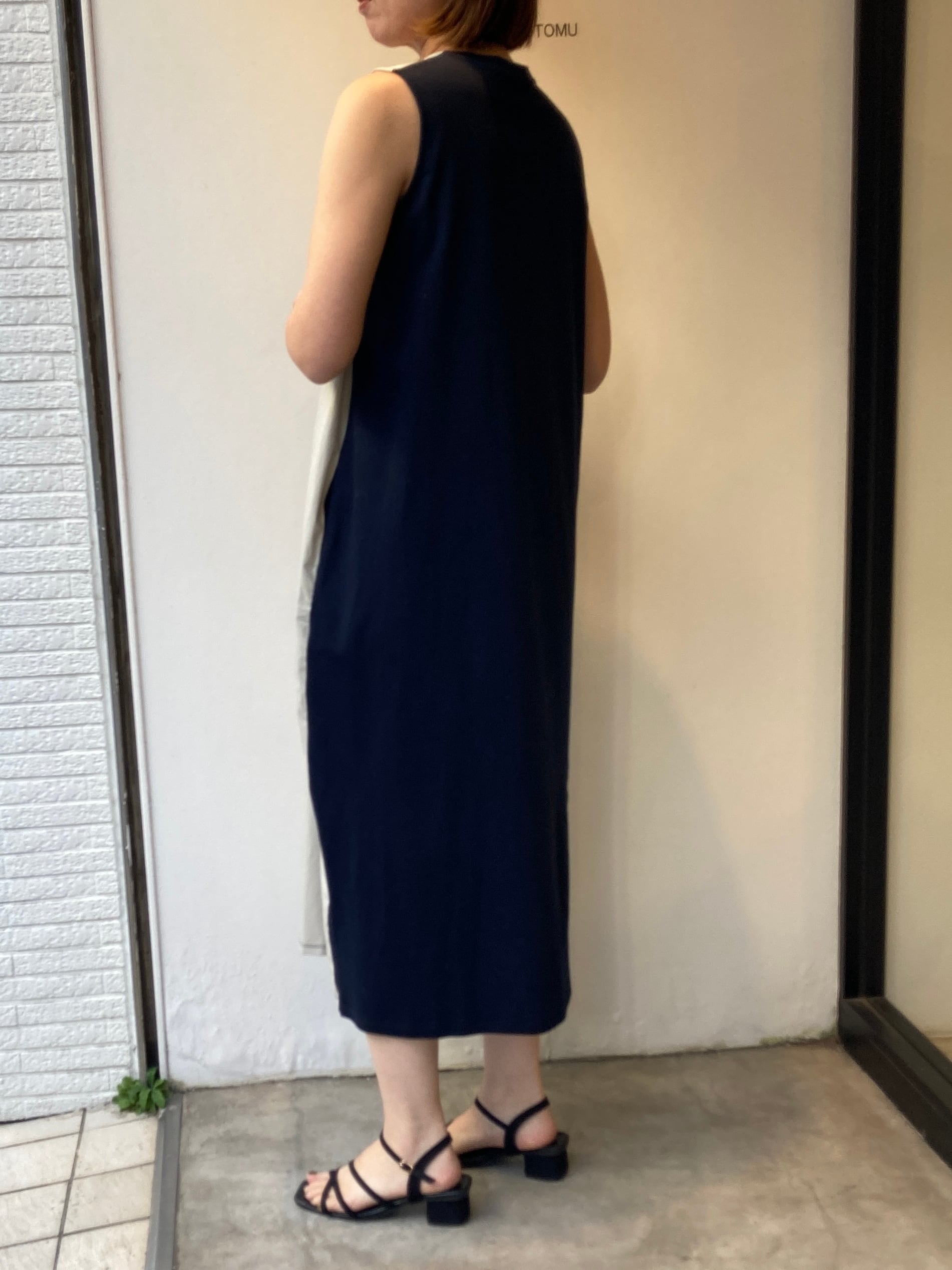 バイカラーペインティングワンピース(ネイビー)