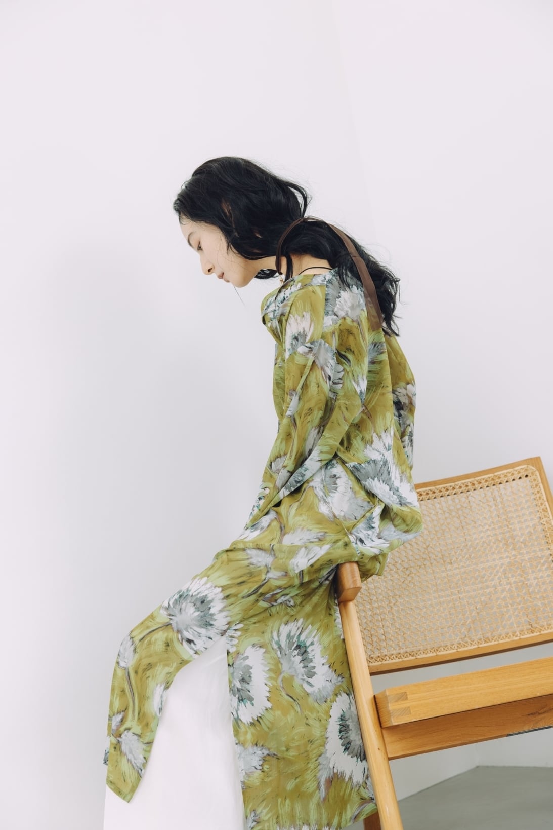 繊細な楊柳の表情が、シンプルなシルエットに奥行きをプラス