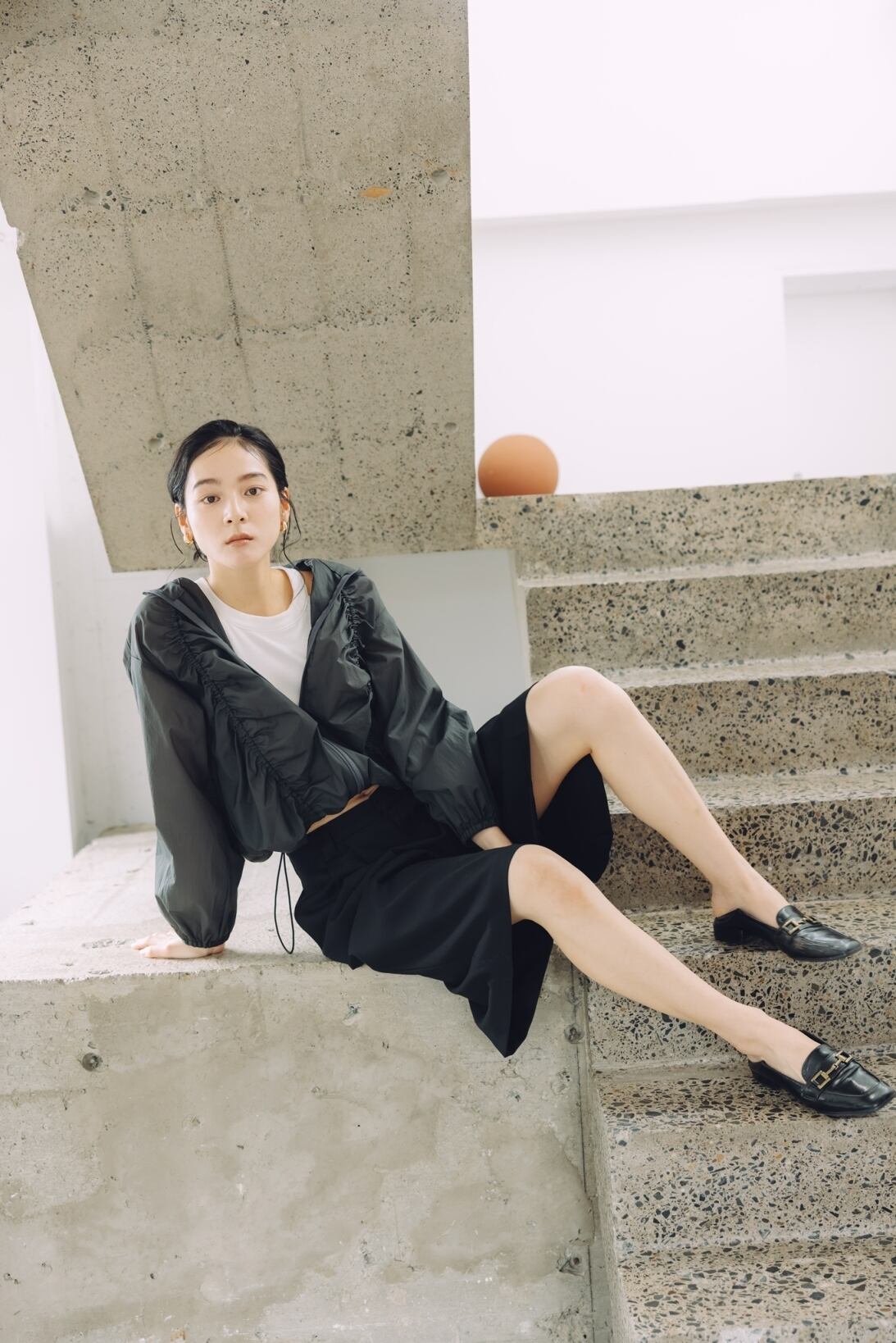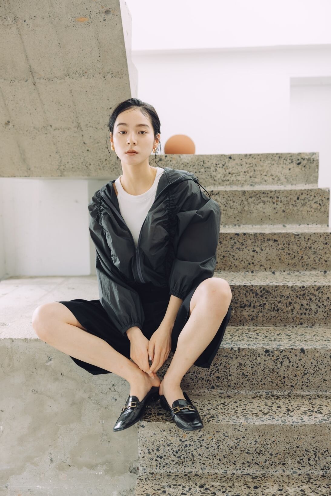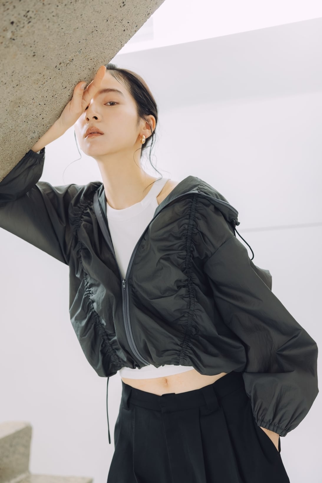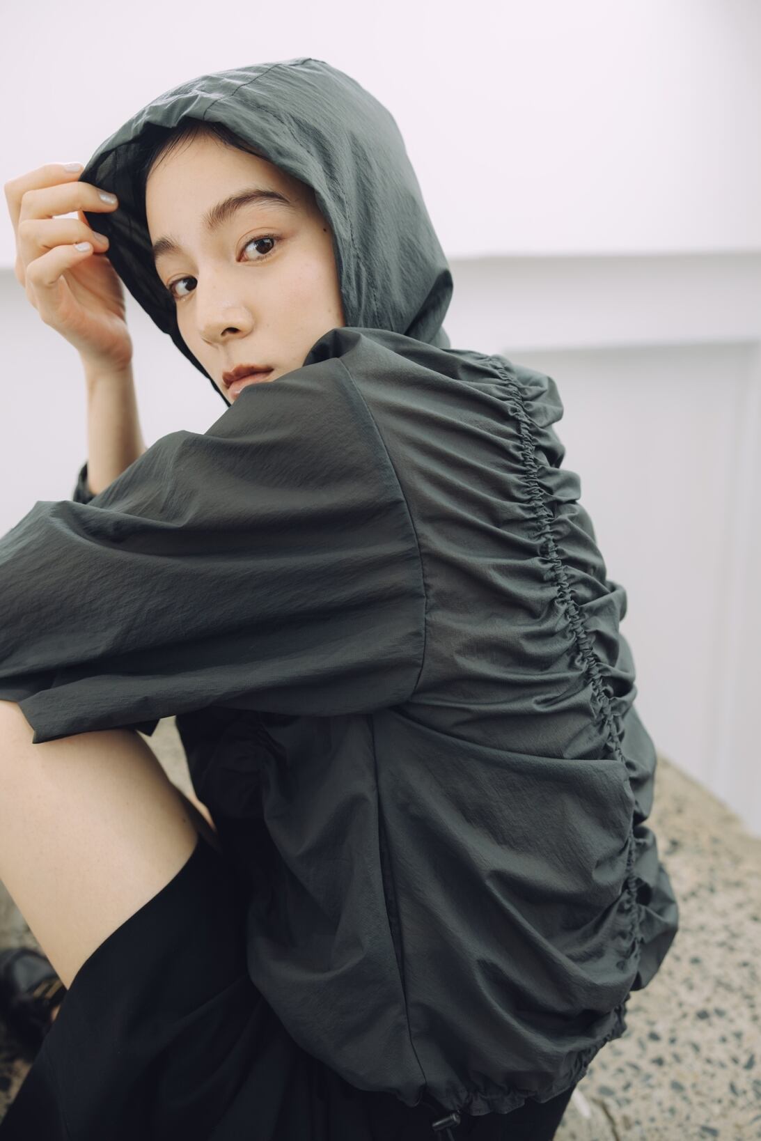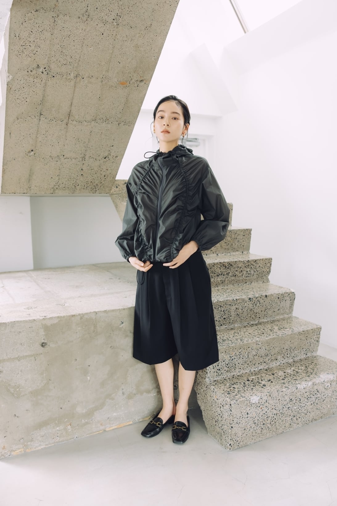 軽やかさとデザイン性を兼ね備えた、大人のためのギャザーブルゾン